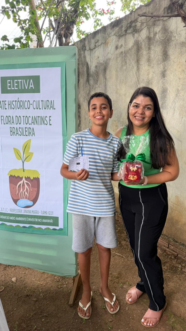 A culminância da eletiva “Resgate Histórico-Cultural da Flora do Tocantins e do Brasil”, desenvolvida pela professora Janaína da Silva Marra, foi realizada com sucesso na Escola Estadual Girassol de Tempo Integral de Combinado e contou com a participação da Prefeitura de Combinado por meio da Secretaria Municipal de Meio Ambiente.